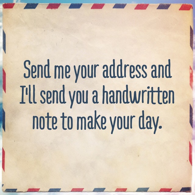 I swear I’m not a stalker This is pretty self-explanatory. I like to write notes to people that cheer them up. I’ll do that for you too if you send me your address. Share: Click to email a link to a friend (Opens in new window) Email Click to print (Opens in new window) Print TweetShare on TumblrMore Click to share on Reddit (Opens in new window) Reddit Like Loading... Related